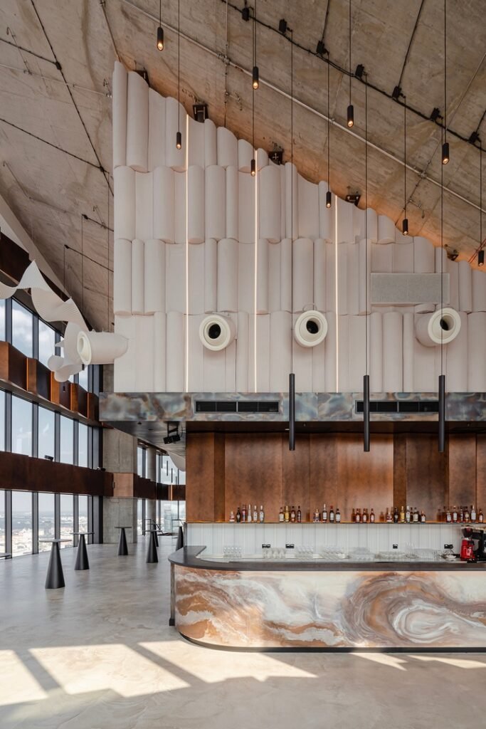 А на 42 этаже находится просторное открытое пространство площадью 270 м² в стиле лофт и высотой более 14,5 м. В нём могут разместиться до 200 человек. Пространство также отлично подойдёт для проведения конференций, банкетов или ужинов, фотосессий или презентаций новых продуктов.