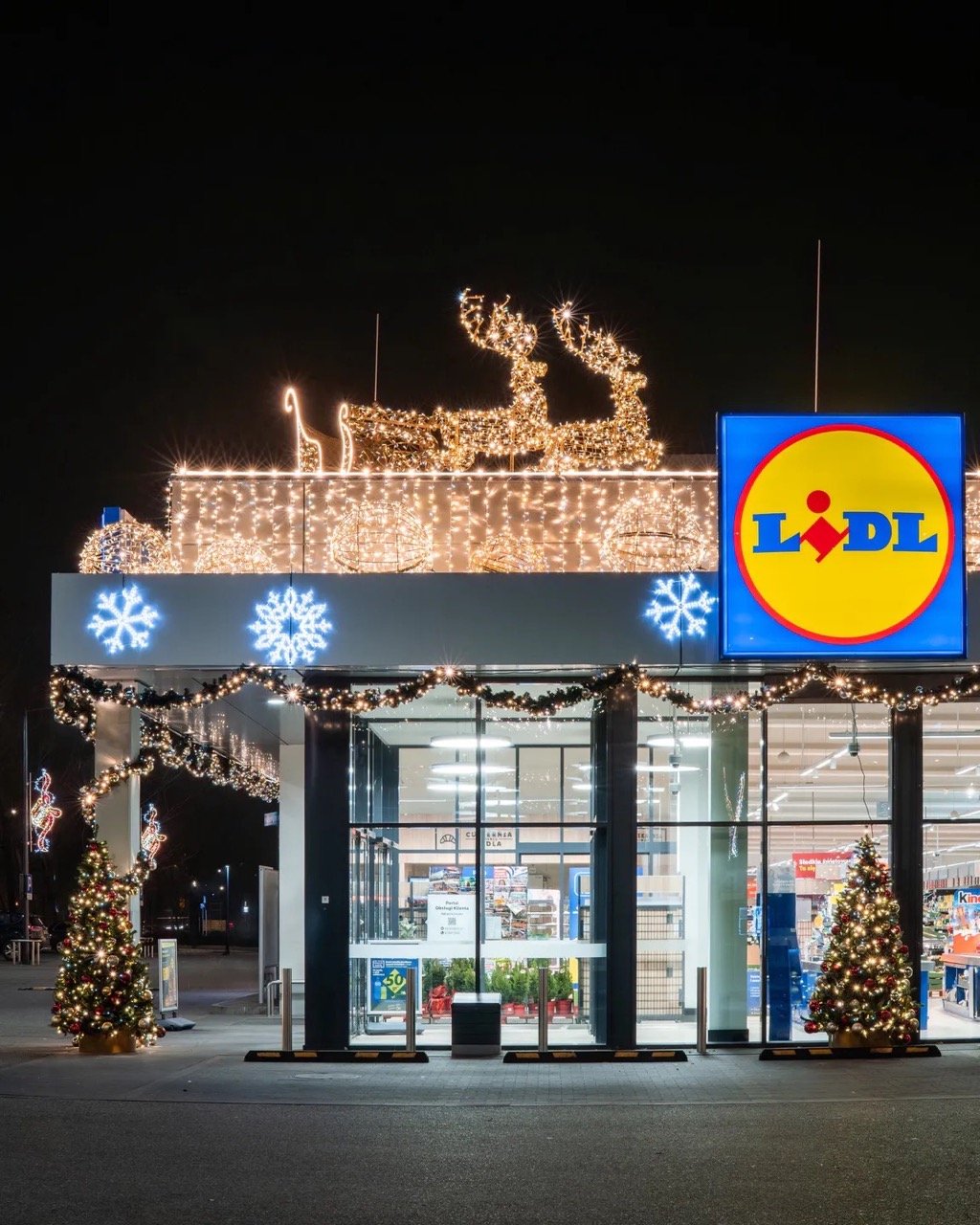 Сообщается, что рождественское оформление варшавского магазина Lidl создавалось под чутким руководством одной из самых популярных польских инфлюенсерок — Andziaks — именно она отвечала за креативную концепцию иллюминации.