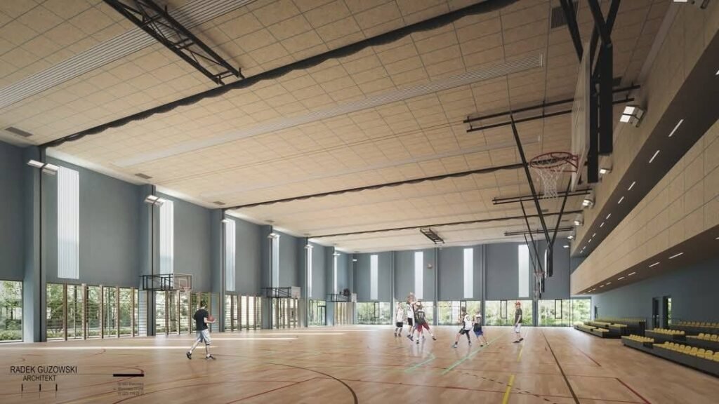 Здесь уже находится спортивный комплекс «Бялоленка», включающий футбольное поле, беговую дорожку, фитнес-зал и оздоровительный центр. Однако существующий школьный спортивный зал больше не справляется с растущими потребностями местного сообщества из-за увеличения численности населения и количества учеников.