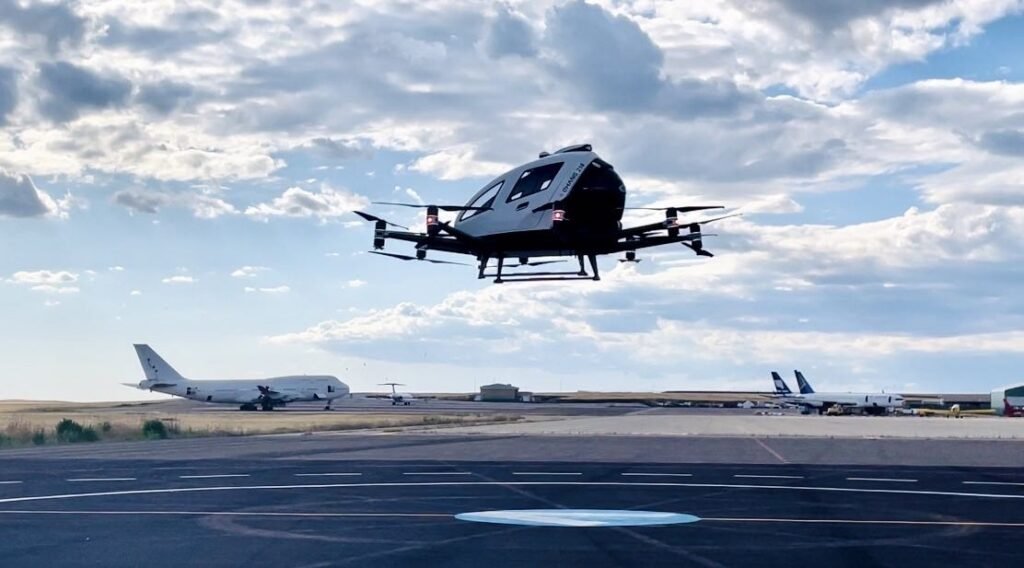 Эти технологии будущего разрабатываются несколькими компаниями. Среди них китайский EHang и немецкий Lilium. Автономный октокоптер EHang 216, напоминающий небольшой вертолёт, оснащён восемью двигателями и может перевозить двух человек или 140 кг груза. Он обеспечивает 23-минутный полёт на расстояние 30 км со скоростью 100 км/ч и высотой 300-500 м на 2-часовом заряде аккумулятора.
