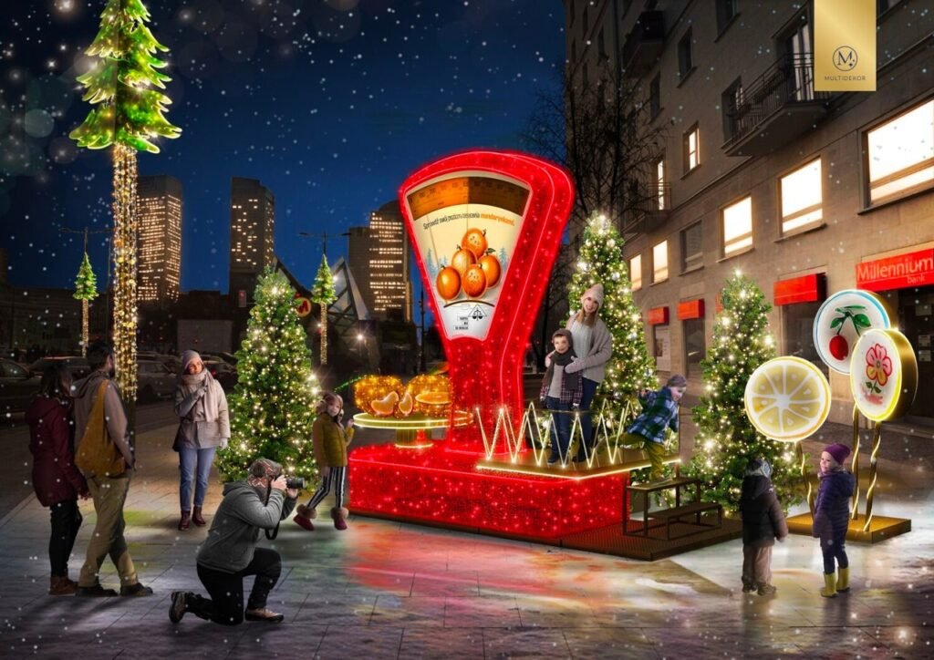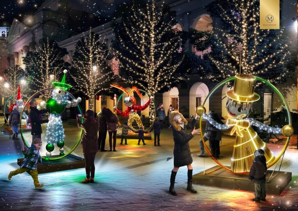 На Замковой площади разместится 27-метровая мультимедийная ёлка, которая будет изготовлена ​​из энергосберегающих и современных материалов. Во время вечерних зимних прогулок жители и туристы также смогут полюбоваться фигурами в виде незабываемого автомобиля «Syrenka» и ретро-мотоцикла «Rys».