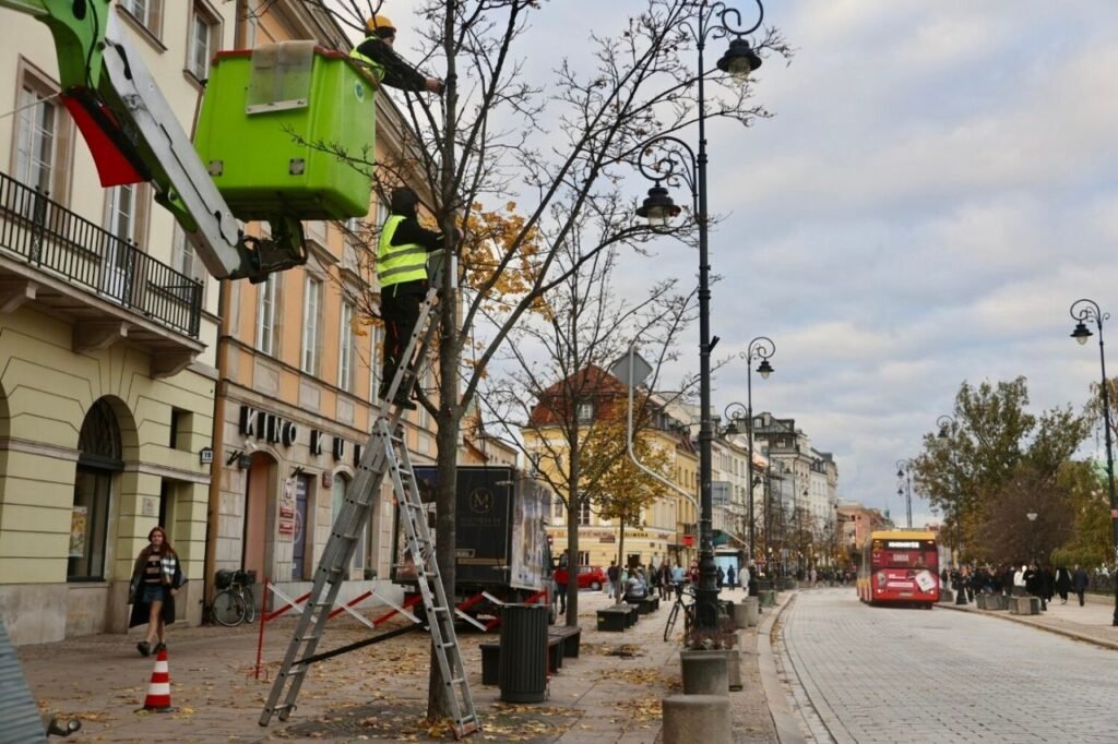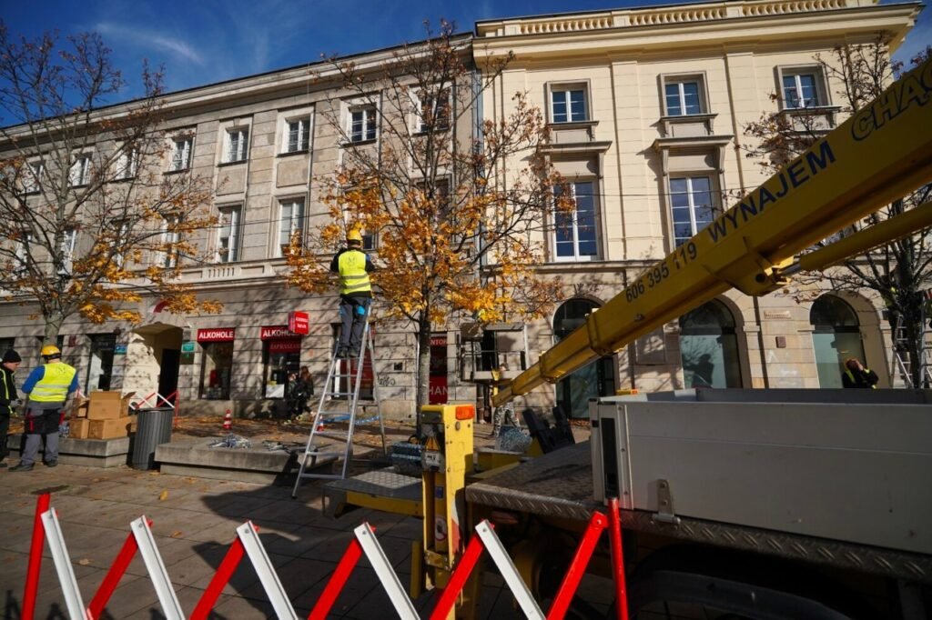 В Варшаве продолжается монтаж рождественской иллюминации, она будет в стиле ретро ПНР