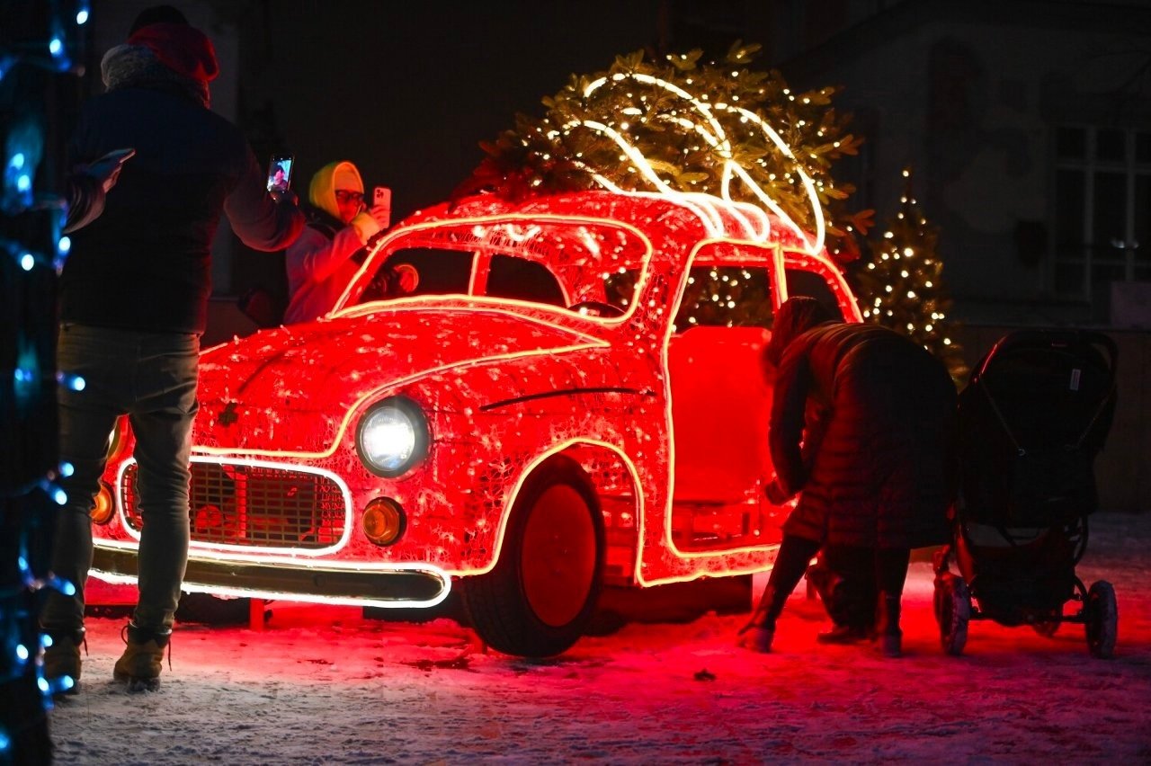 На Королевском тракте и центральных улицах снова появятся ёлочные гирлянды, игрушки в форме грибов, бумажные цепочки и культовые элементы советской эпохи. Прохожие смогут увидеть ретро-насосы с газировкой, старые весы, телефон с дисковым номеронабирателем и светящуюся фигуру варшавской Сирены. Один из самых популярных элементов прошлого года — мопед Рысь, вызывавший улыбку у пешеходов, также вернётся в этом сезоне.