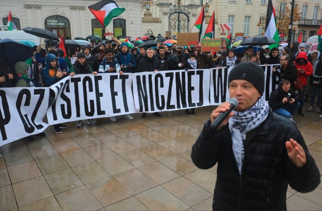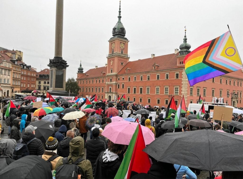 Участники демонстрации собрались под колонной Сигизмунда III Вазы, откуда шли по Королевскому пути к посольству США. В ходе демонстрации можно было услышать лозунги «Свободная Палестина!», «Сектор Газа, Варшава — общее дело!», «Долой колониализм!», «Байден-террорист!», «Да здравствует свободная Палестина!».