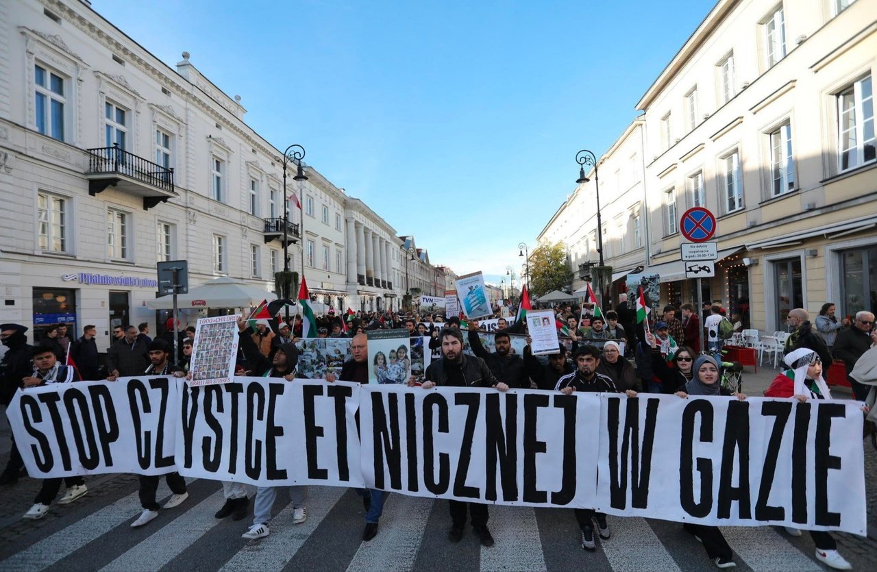 В воскресенье, 29 октября, в Варшаве прошли две демонстрации: одна в знак солидарности с Израилем, другая против действий Израиля в Секторе Газа. Обе стороны решили организовать демонстрации одновременно, в 13:00.