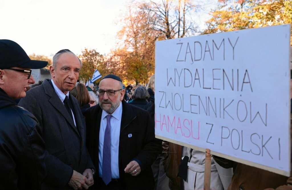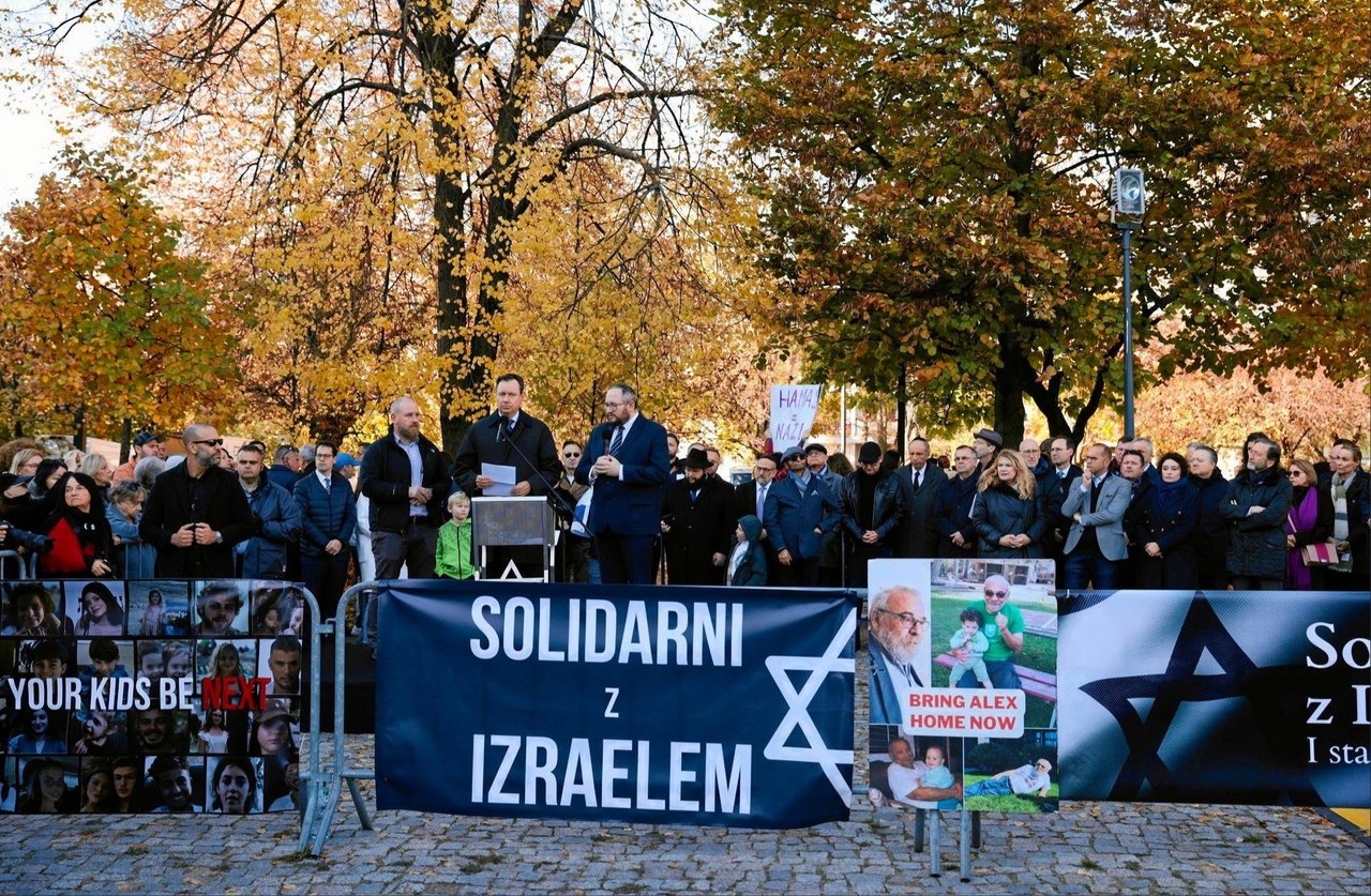 Демонстрация солидарности с Израилем прошла у памятника героям гетто. В ходе мероприятия выступили: политик «Третьего пути» Михал Каминьски. На месте демонстрации были установлены стол и 200 стульев, символизирующие израильских заложников, похищенных боевиками ХАМАС. Участники скандировали лозунги о противодействии терроризму.