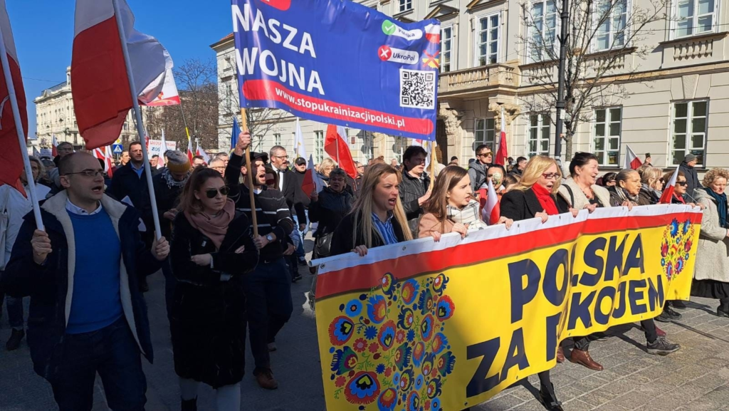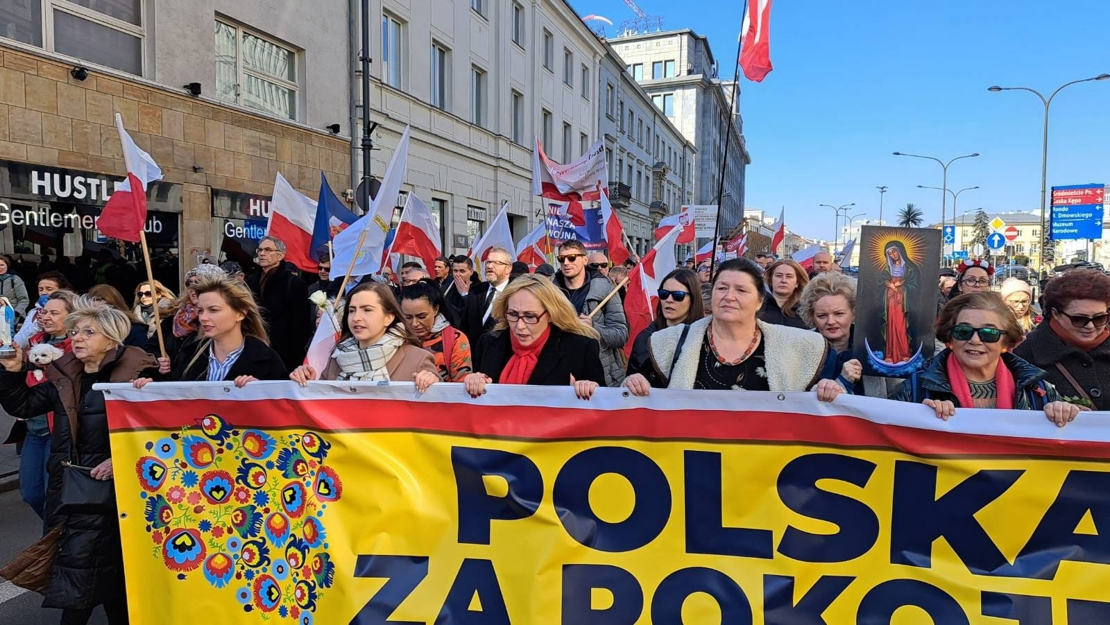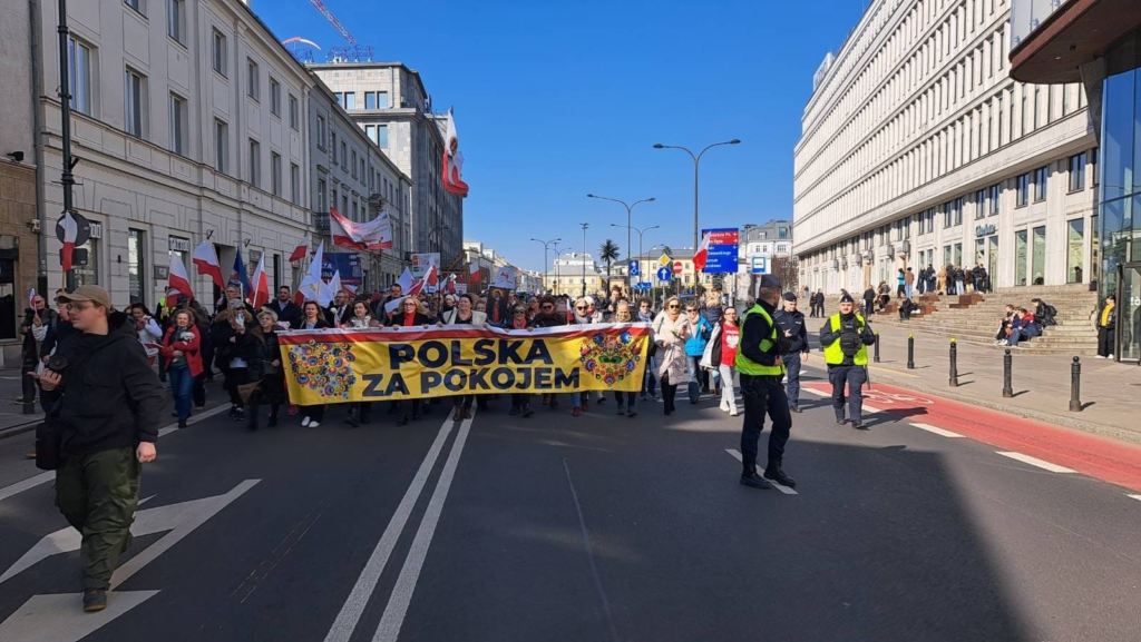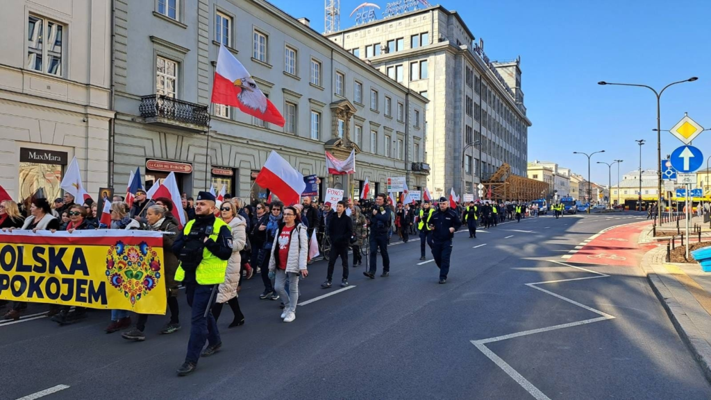 В субботу, 9 марта, в Варшаве прошёл марш «Polki za pokojem», организованный партией Konfederacja Korony Polskiej. В нём участвовали в основном женщины, а среди марширующих и выступавших в конце были депутаты от KKP Влодзимир Скалик и Гжегож Браун.