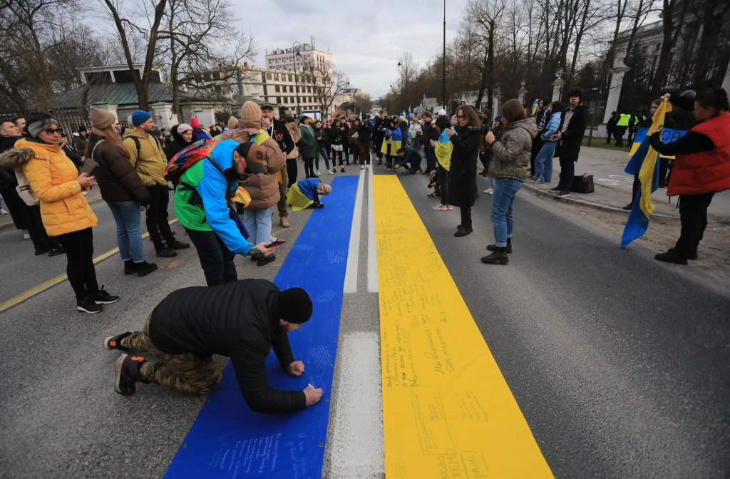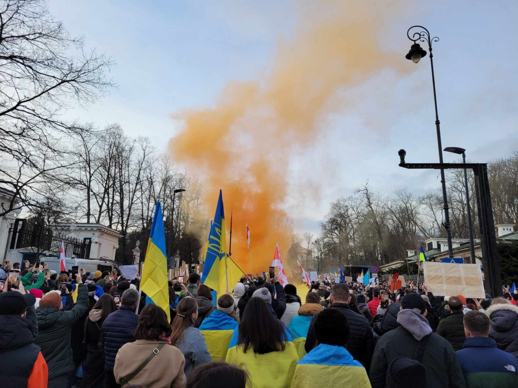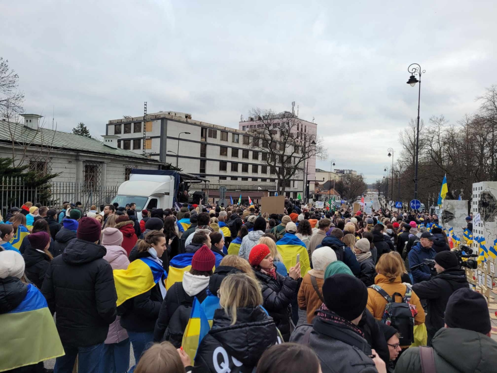 Более 10 тысяч человек приняли участие в субботней демонстрации «2 года в обороне Украины и Европы», посвященной второй годовщине начала войны в Украине.