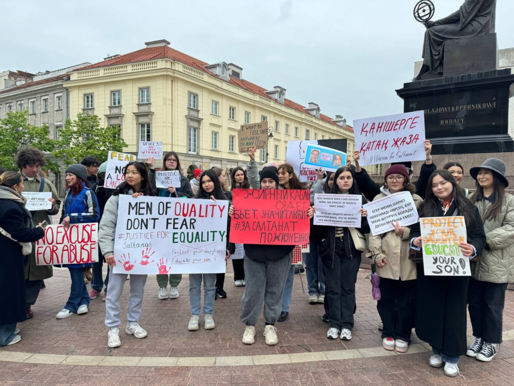 На митинге можно было увидеть плакаты на казахском, русском, английском и польских языках, среди них: «Научите их не насиловать», «Бьёт, значит сядет», «Не учите меня, как одеваться» и другие.