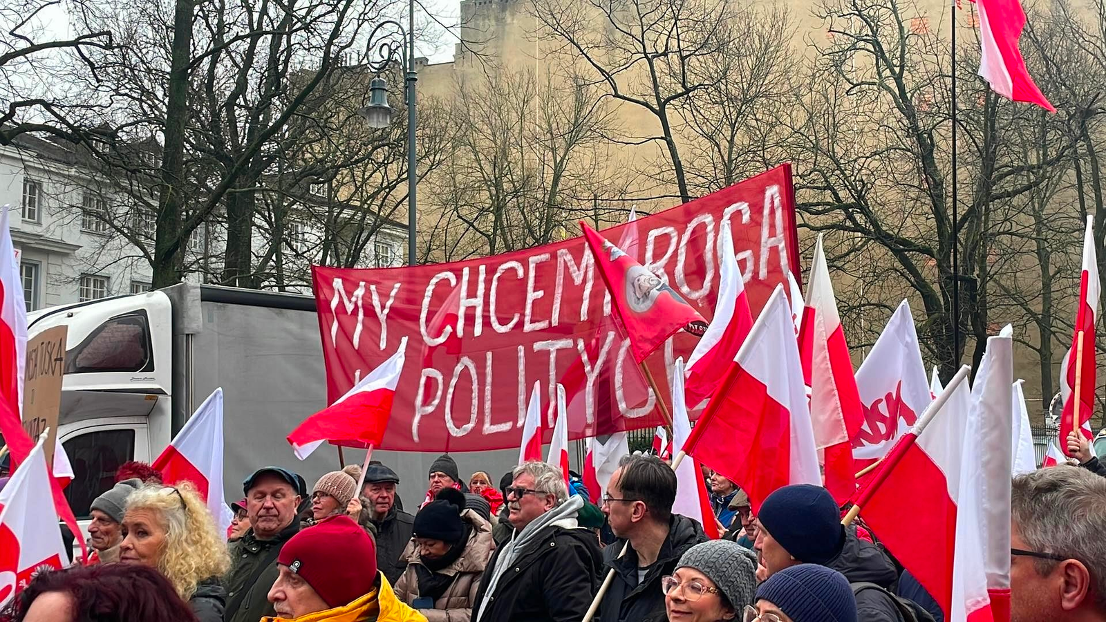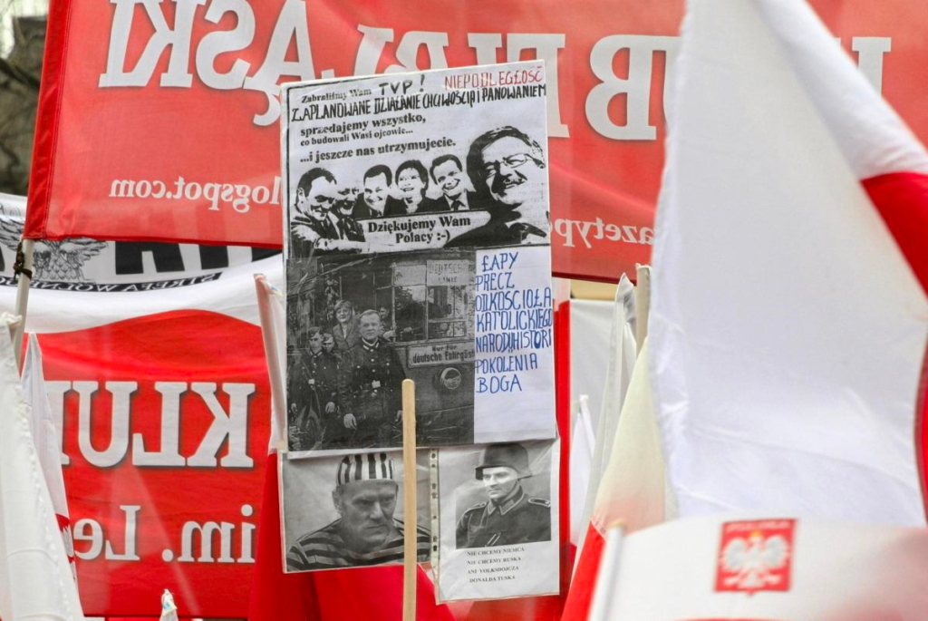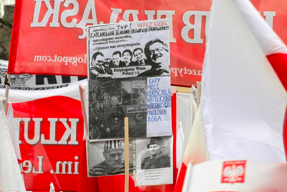 На митинге можно было увидеть лозунги: «Во имя любви к Польше», множество баннеров против Дональда Туска, а также: «Мы хотим Бога в политике». Томаш Сакевич, главный редактор «Gazeta Polska» и один из организаторов этой акции, утверждает, что «сегодня нами правят идиоты Гомулки, одетые в европейскую одежду». Со сцены оскорбления политических оппонентов идут с самого начала и почти постоянно, особенно Дональда Туска («Мы пережили Россию, мы победим Туска»).