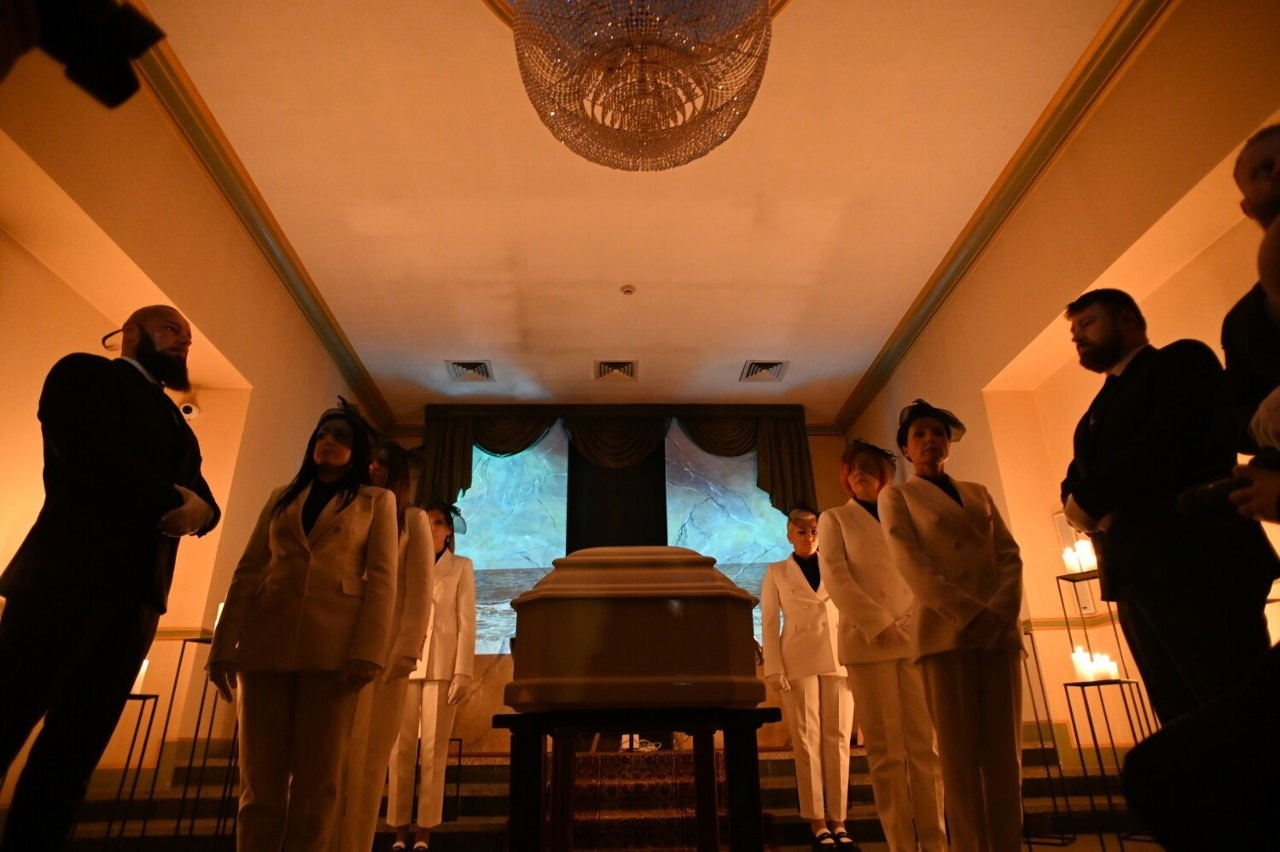 Скорбящие собрались в 13:00 в зале С, где имели возможность попрощаться с Лизой лично и расписаться в книге соболезнований. Основная часть церемонии началась с похоронной процессии в 14.00.