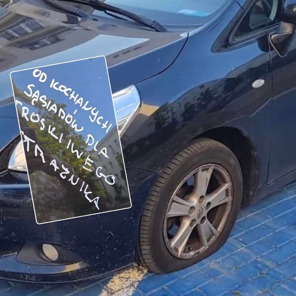 15 июня, возвращаясь домой, семья заметила, что их авто, припаркованное с видимой парковочной картой, было намеренно повреждено: были срезаны клапаны во всех шинах, а на кузове маркером было написано «od kochających sąsiadów dla troskliwego strażnika».
