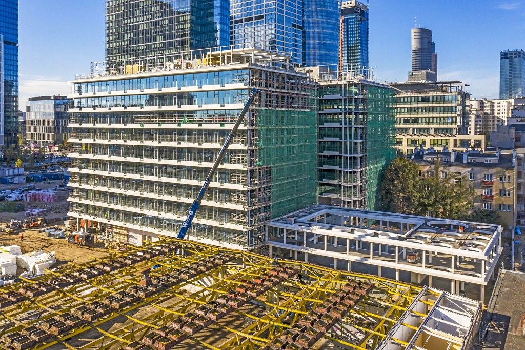 Строительство здания «Office House» в комплексе Towarowa 22 близится к завершению. Главная изюминка проекта — двухэтажная ажурная оранжерея, выступающая из фасада здания в сторону улицы Miedziana.