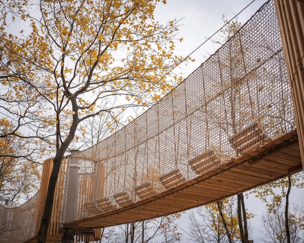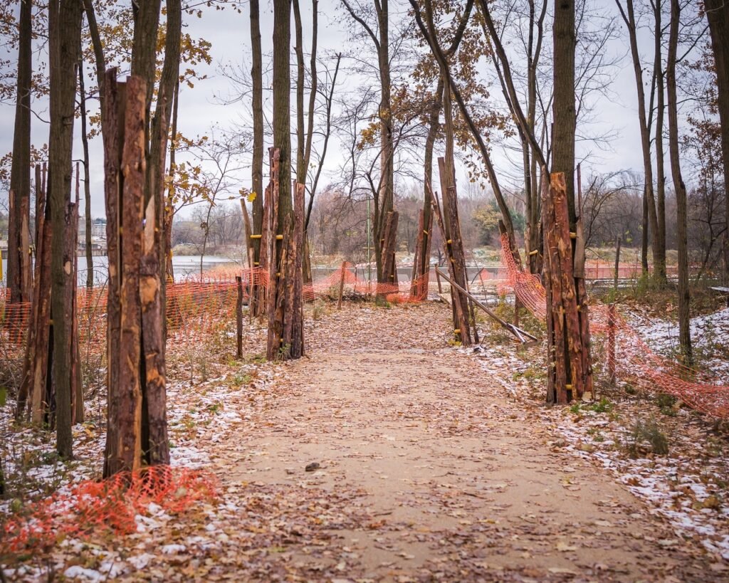 Работы идут активными темпами: уже завершены основные подготовительные этапы, включая установку фундаментов для коммуникаций и строительство дорожек. Также начался монтаж пирсов и элементов верёвочного парка. Варшавский совет по озеленению сообщает, что уже высажено 20% кустарников и многолетников.