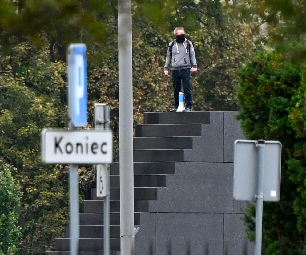В Варшаве вооружённый мужчина залез на памятник жертвам Смоленской катастрофы и угрожает взорвать себя