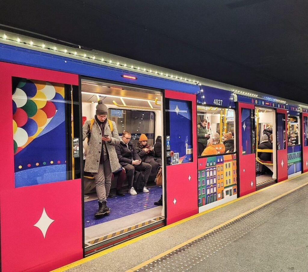 Что касается метро — первоначально рождественский поезд появится на линии М1. Однако каждую неделю — с воскресенья по понедельник очередь будет меняться.