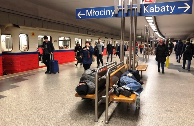 Варшавский метрополитен планирует избавиться от бездомных со станции, которые там ночуют. Для этого хотят заменить обычные скамейки на скамейки, разделённые подлокотниками, чтобы на них невозможно было спать.