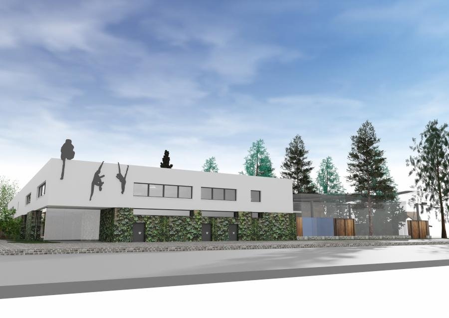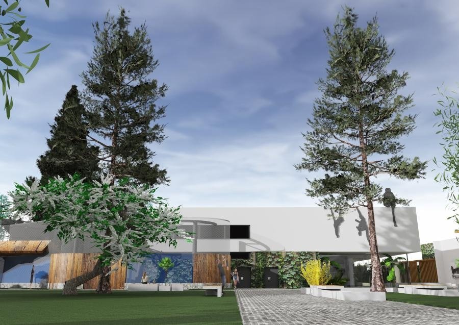 Здание будет окружено зеленью, создающей целостный природный комплекс. Фасад первого этажа украсят виноградные лозы, а второй этаж покроют светлой структурной штукатуркой.