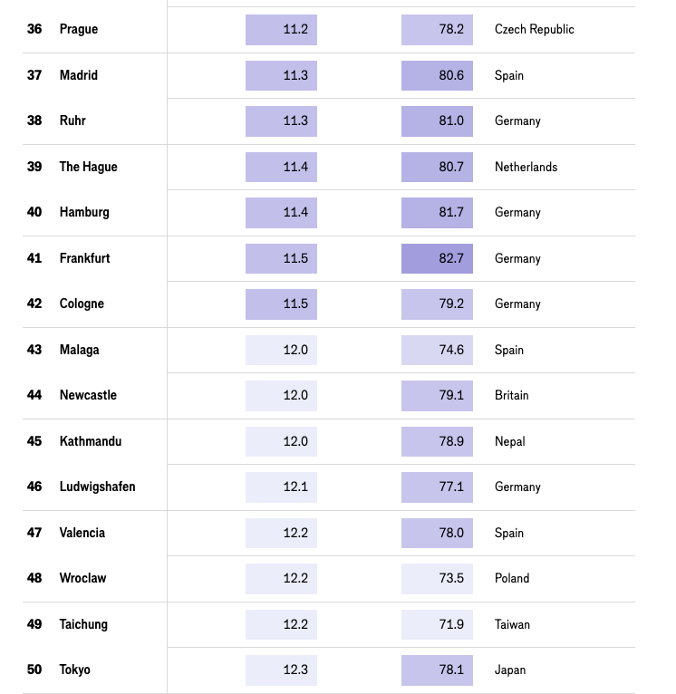 — Германия — 11 немецких городов попали в список, среди них: Мюнхен (6-е место), Берлин (11-е место)