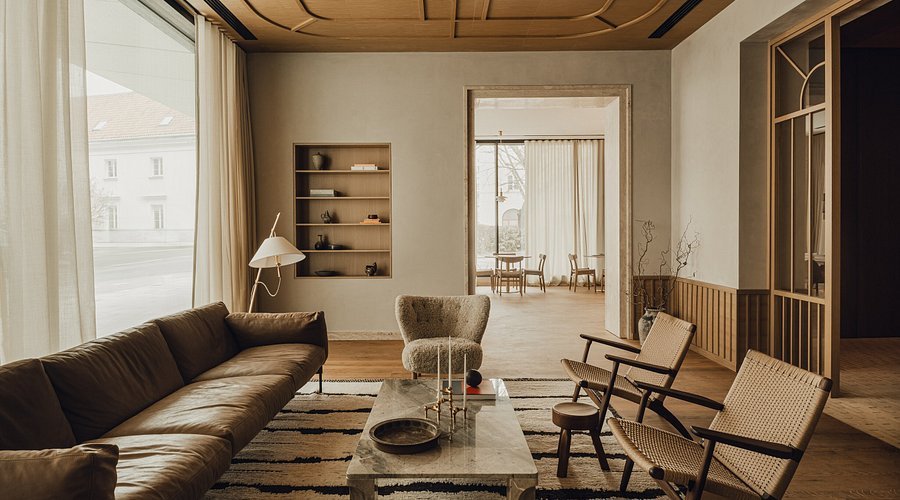 Фасад здания гармонично дополняет историческую архитектуру столицы, а интерьеры излучают спокойствие и элегантность благодаря естественной цветовой палитре, таким материалам, как дерево и камень, а также мебели и деталям, изготовленным на заказ.
