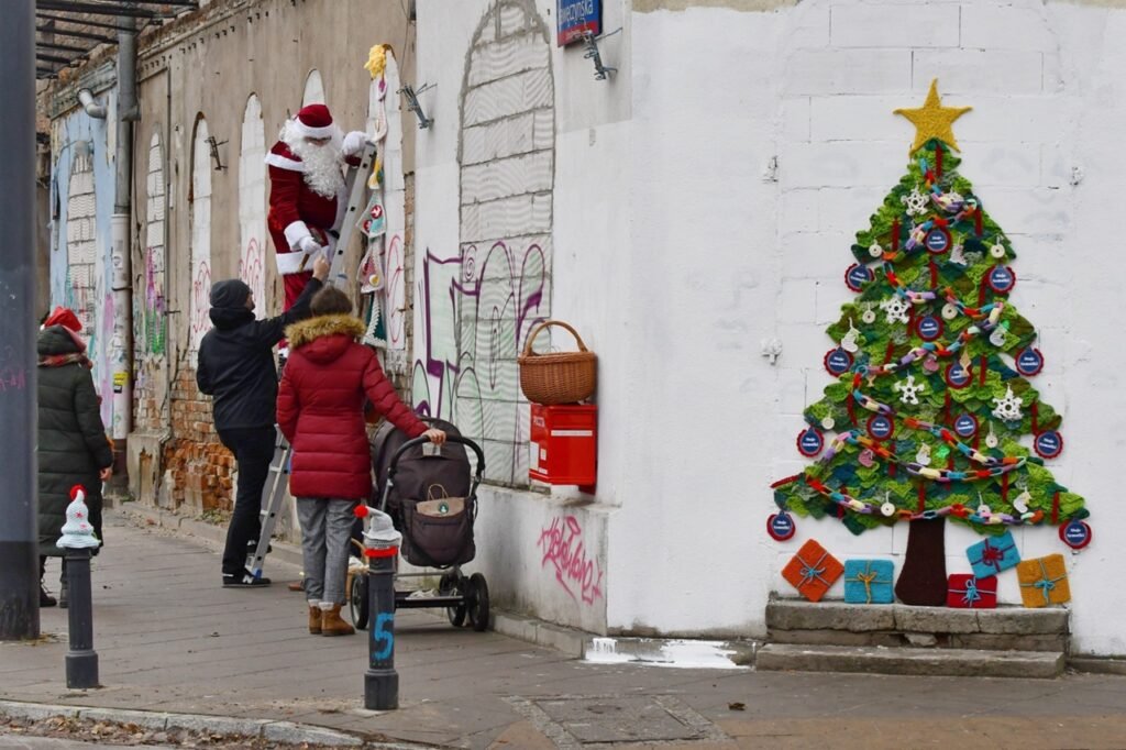Уличные столбы на Kawęczyńska снова стали объектами внимания благодаря вязаным украшениям, установленным жителями Szmulki, одного из osiedle в Praga-Północ. В этот раз местные жители подготовили «одежду для столбов» в рождественском стиле, украшая дорожные столбы рождественскими елками и гномьими шапками. Также на одной из стен зданий появилась вязанная новогодняя ёлка.