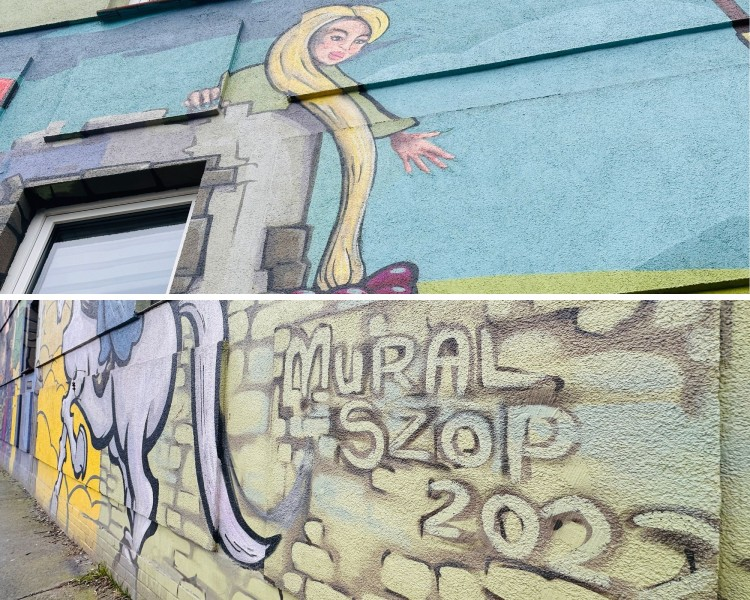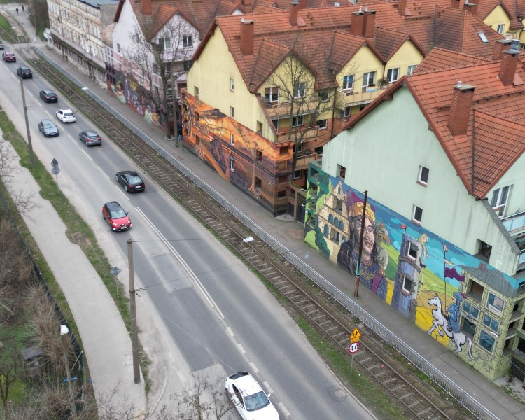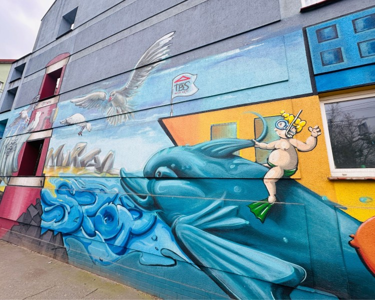 Самый колоритный район Вроцлава с многочисленными муралами находится на улице Opolskiej. Компания TBS Opolska, владеющая блоками, хотела таким образом оживить печальный район. Автор муралов – «Mural Szop». На своем сайте авторы описывают, что означает каждый элемент: