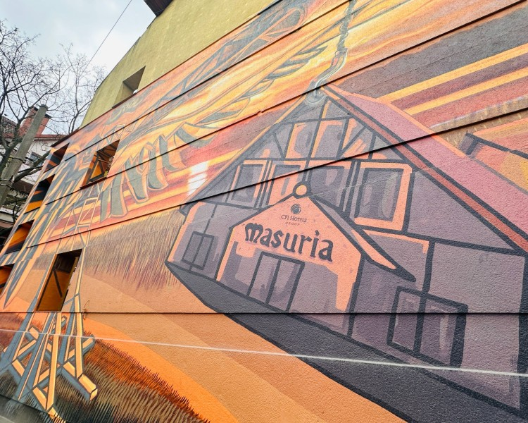 - Мазурия – большие краны возводят здание гостиницы Masuria. Эта работа представляет собой сюрреалистическое видение строительства в прекрасном регионе Мазур.