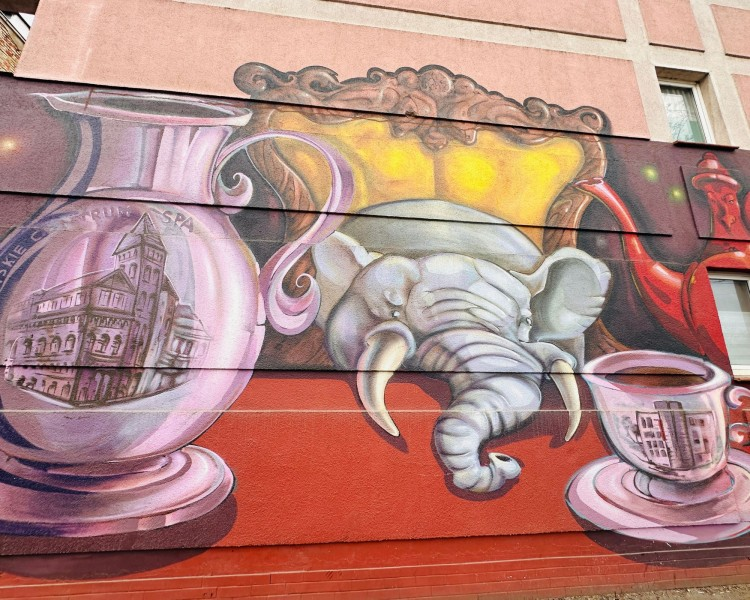 - Застолье — слон после застолья. После приятно утомительного пребывания во Wrocławskim Centrum SPA, он отдыхает и строит планы на дальнейшие купания.