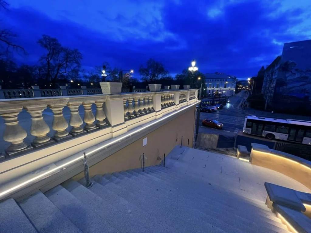 Вся территория будет освещена, контролируема камерами, подключенными к городскому мониторингу, и оснащена оборудованием для людей с ограниченными возможностями. Город позаботился и о зелени. Ландшафт на холме дополнят 12 новых деревьев (липы мелколистные и красные каштаны) и десятки кустарников, а также растения в горшках. Склоны на холме также будут приведены в порядок.