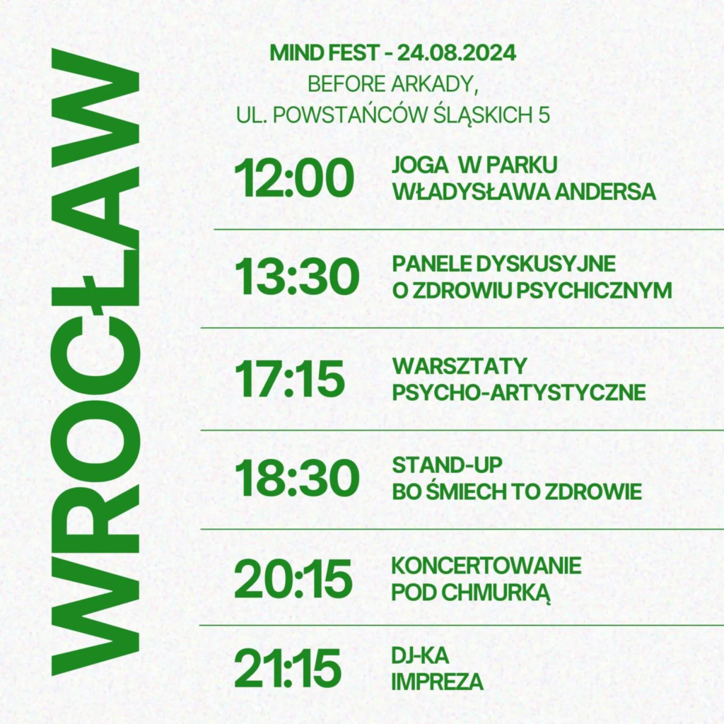 Совсем скоро во Вроцлаве пройдёт MindFest — открытый фестиваль психического здоровья, целью которого является не только распространение информации о нашей психике, но и предоставление конкретных инструментов для решения повседневных эмоциональных проблем.