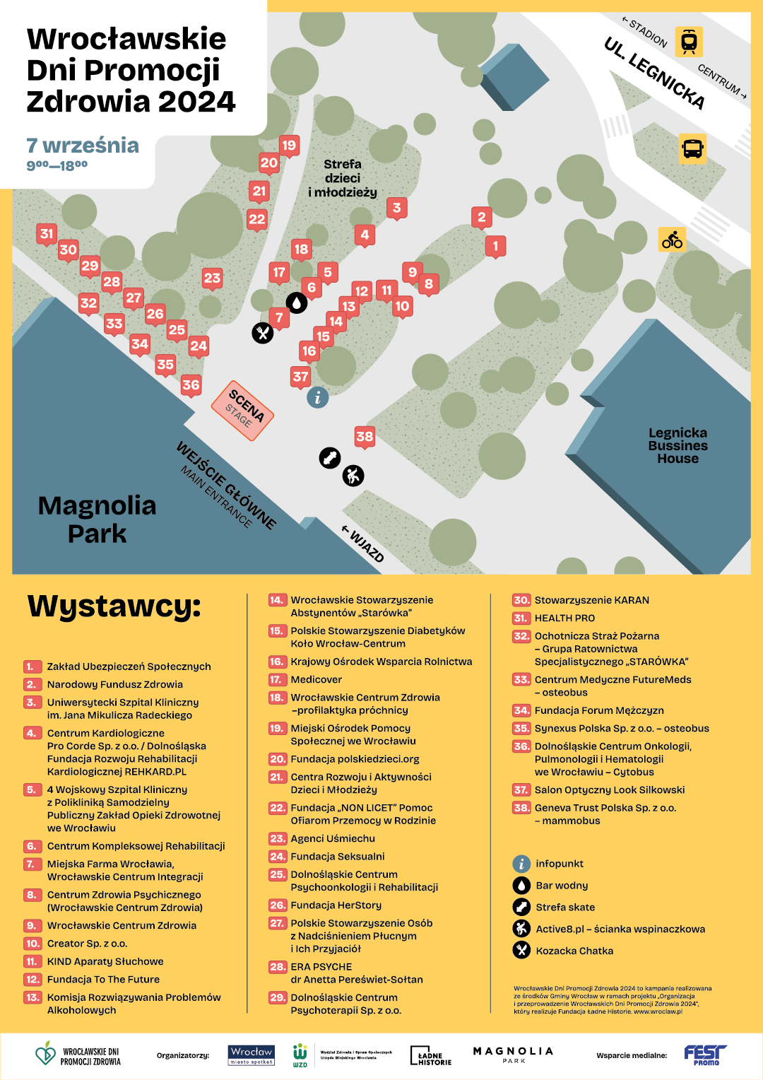 В субботу, 7 сентября, во Вроцлаве состоятся 15-е Вроцлавские Дни укрепления здоровья — это крупнейшее мероприятие, пропагандирующее здоровый образ жизни. Вы сможете пройти ряд профилактических анализов, которые не всегда доступны в повседневной жизни, а также воспользоваться консультациями специалистов различных областей, а самые маленькие гости смогут насладиться скейт-зоной и скалодромом.