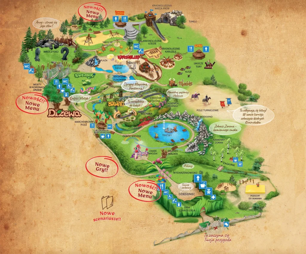 • Mroczny Dwór — единственная в Польше американская горка в темноте. Доступна для детей ростом выше 95 см.