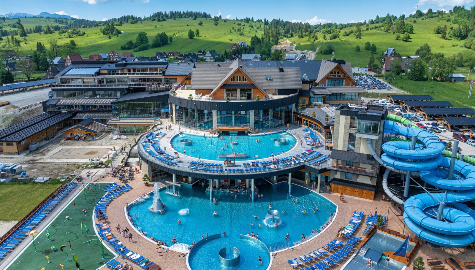 Комплекс предлагает более 40 бассейнов, которые подходят как для семейного отдыха, так и для индивидуального релакса. Здесь вас ждут бассейны с рассольной водой, стремительные реки, искусственные волны, гейзеры и гидромассаж. Для детей предусмотрены горки, песчаный пляж и специальные игровые зоны.