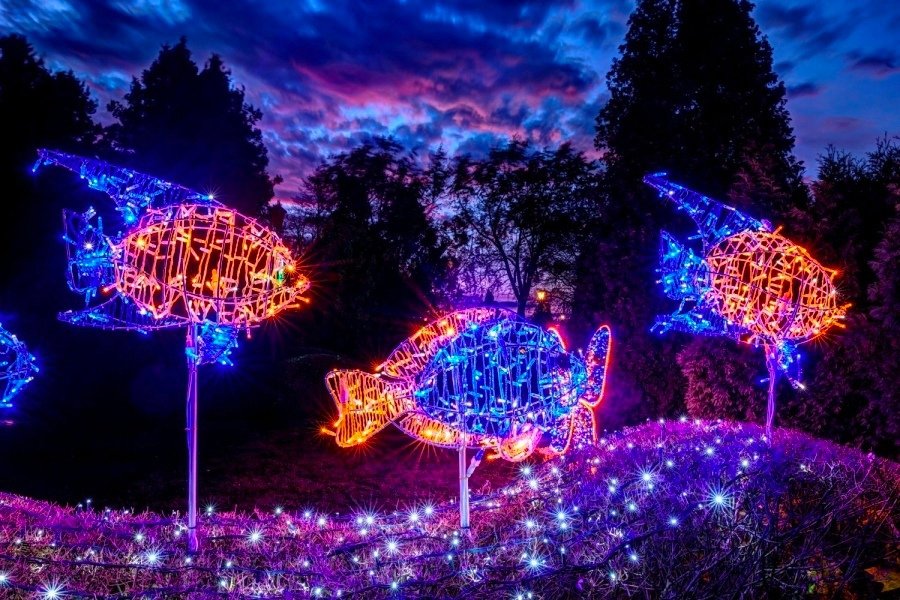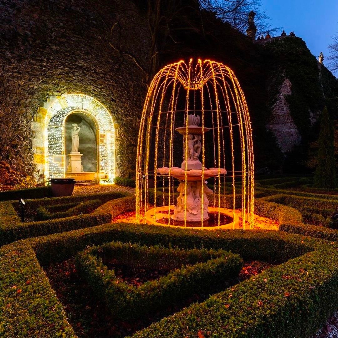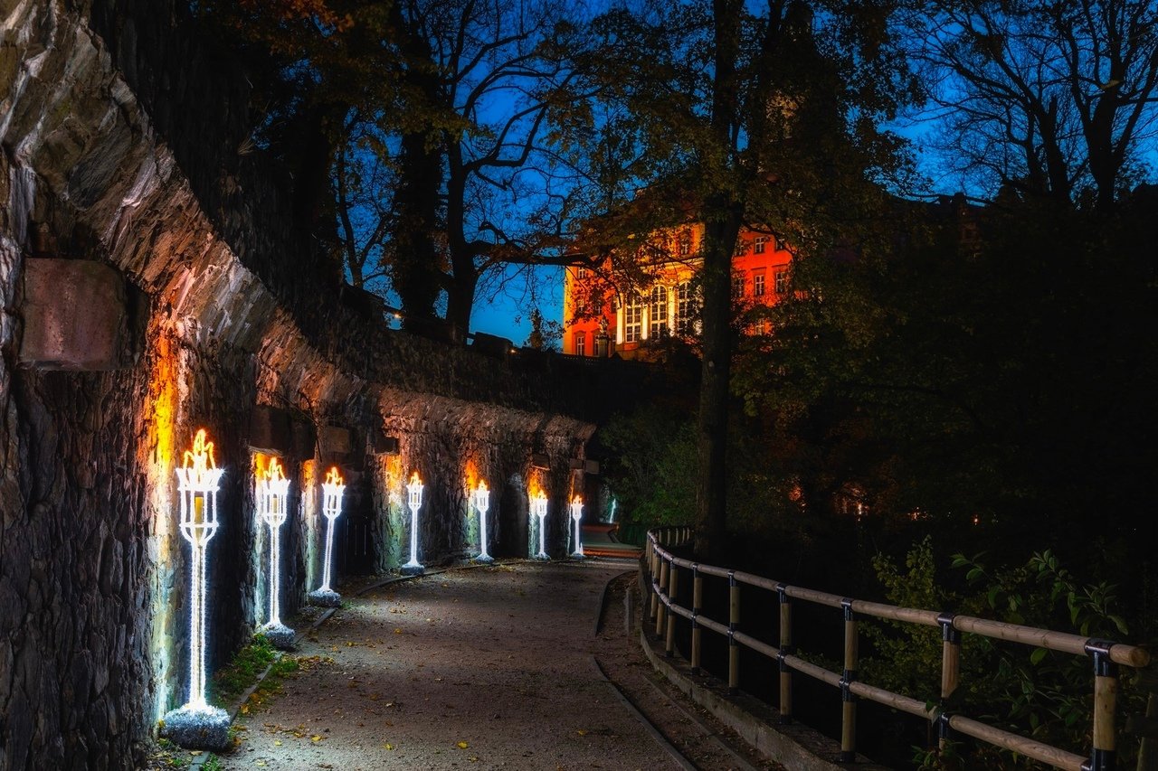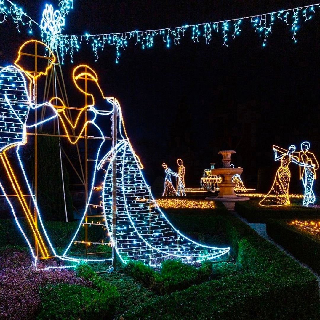 В Садах света вы увидите декорации, отсылающие к истории замка и замковой жизни, в том числе: фигуры на княжеском балу, иллюминация на многочисленных фонтанах и рыцарский поединок. Сады света замка Ксёнж — идеальный вариант для зимних вечеров, например, романтической прогулки или места для семейного путешествия.