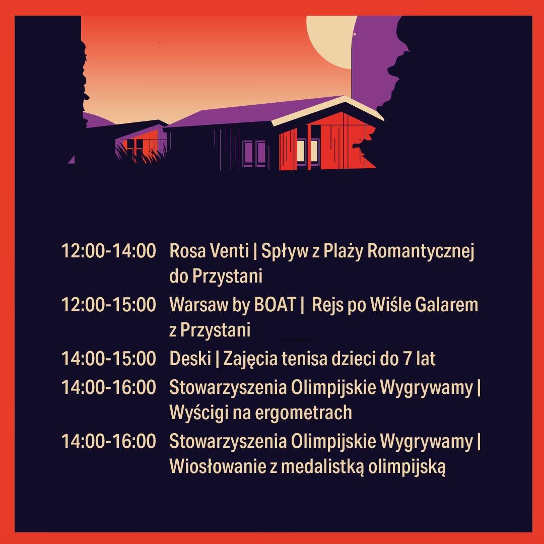 Przystań Warszawa — идеальное место для отдыха и наслаждения культурными мероприятиями, спортивными занятиями и гастрономическими открытиями, наслаждаясь прекрасными видами Вислы в тихом лесном оазисе прямо в центре Варшавы. Наша цель – создать место, которое станет центром спорта, культуры и развлечений высокого уровня, чего недостает в нашей столице. Все мероприятия тщательно отбираются, чтобы предложить Варшаве невиданные ранее развлечения.