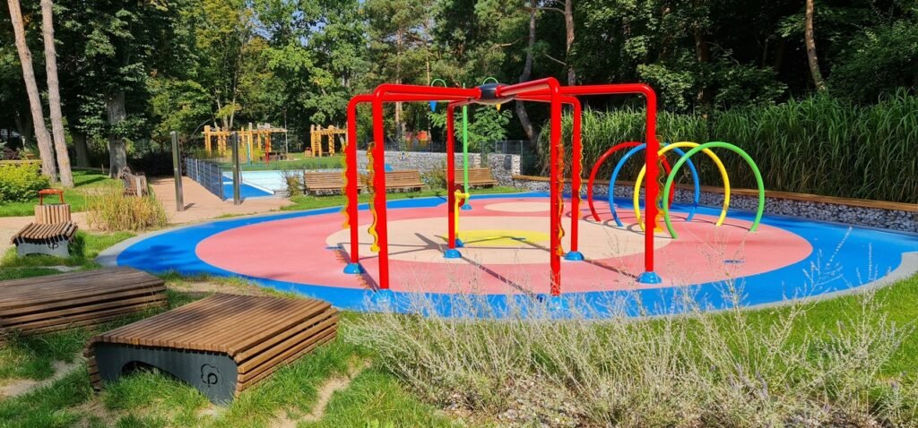 Комплекс включает бассейны как для взрослых, так и для детей. Водную игровую площадку с аттракционами, детскую игровую площадку в виде корабля, прокат шезлонгов, личные шкафчики, столы для пикника, уличный пеленальный столик, охлаждающие распылители, а также водная горка.