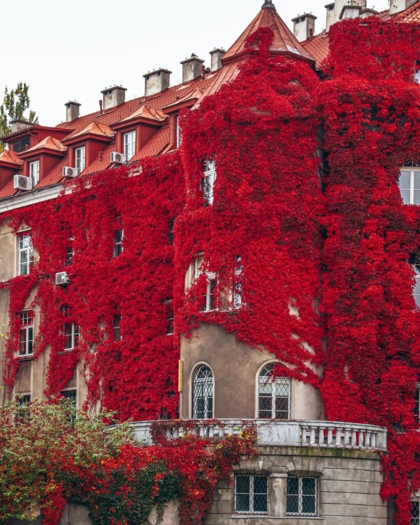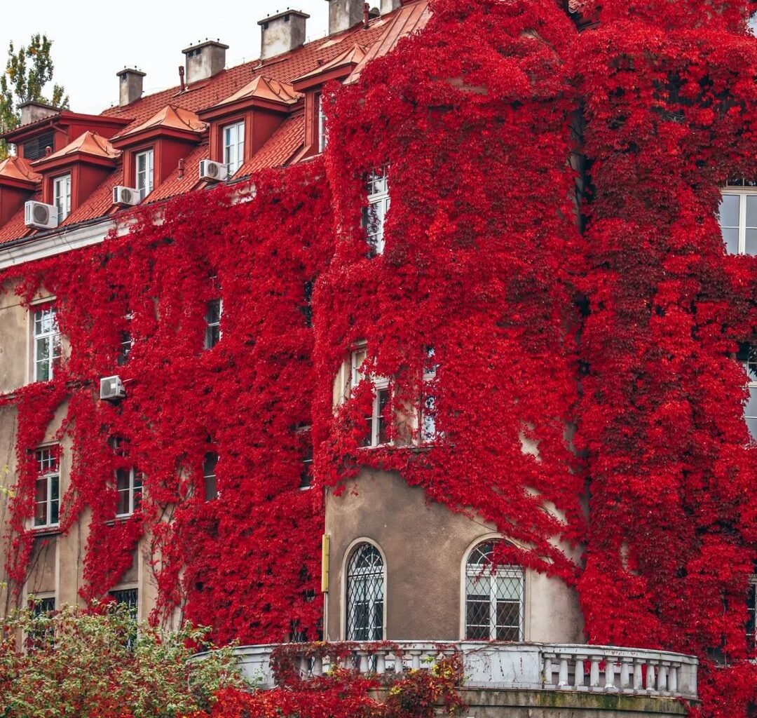 Осень — необычайно красивое время года. Бетонный пейзаж столицы украшают разноцветные листья деревьев и растений. В этой публикации мы расскажем о местах, где яркие краски украшают столичные здания, которые покрыты пышной растительностью, вьющейся вдоль фасадов.