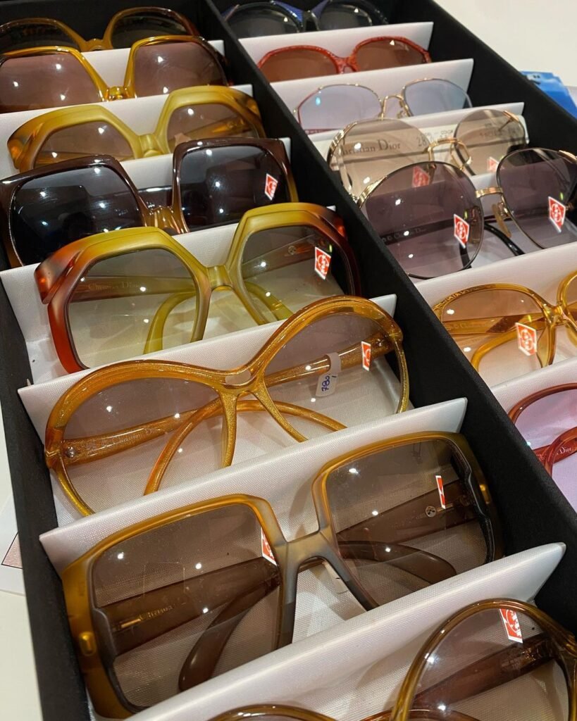 Магазин славится своим ассортиментом солнцезащитных очков, среди которых представлены как японские модели, так и изделия от известных европейских брендов, таких как Dior и Givenchy. Все очки изготовлены из высококачественных материалов, а их ретро-дизайн 70-х и 80-х годов добавляет изысканности. Здесь можно найти также модели от Nikon, Charmant, Seelex, Hoya и Carrera.