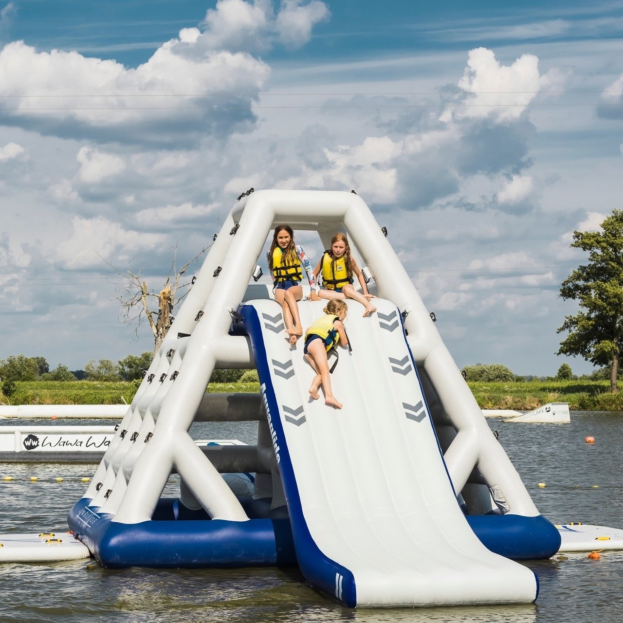 Широкий выбор развлечений гарантирует, что каждый найдёт что-то для себя: 2 подъёмника для вейкборда, трамплины разного уровня сложности, несколько площадок для пляжного волейбола, зона кроссфита, плавучая игровая площадка с горкой, батутом, пирамидой, качелями и полосой препятствий, а также игровая площадка на берегу для самых маленьких.
