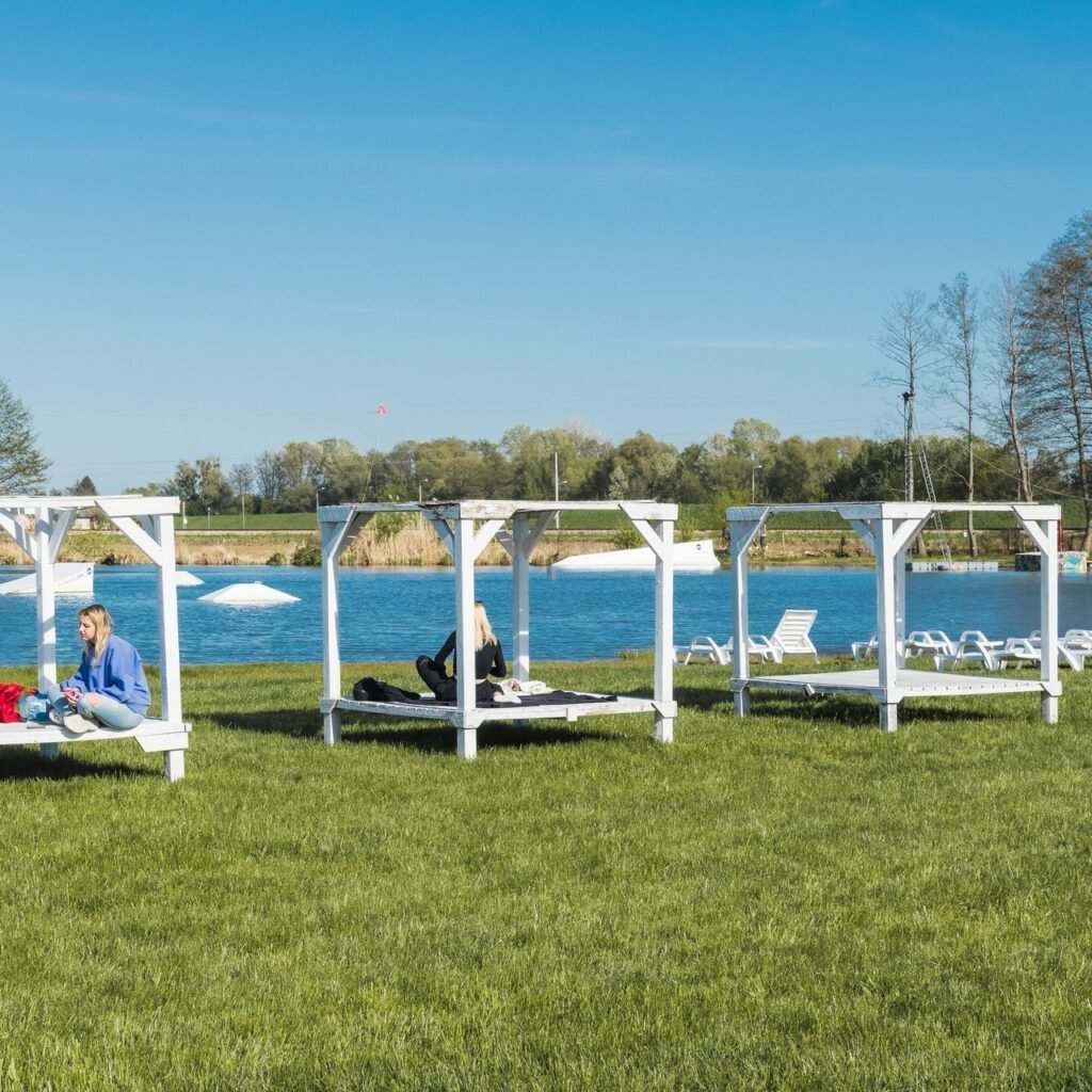Кроме того, в WAWA WAKE найдутся развлечения для любителей спокойного отдыха на природе. Здесь можно погреться под солнцем и расслабиться в чилаут зоне с двумя песчаными пляжами. Для вашего комфорта здесь установлены шезлонги, навесы и зонтики. Вас порадуют оригинальные освежающие напитки, а диджей и живая музыка создадут атмосферу праздника и позитивные вибрации.