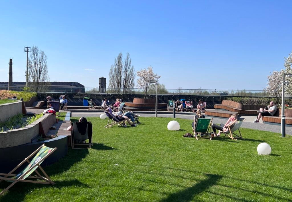 Ещё одной летней достопримечательностью является терраса с садом. Здесь можно найти прогулочные аллеи, скамейки и скверы для отдыха. Особое внимание привлекает «Провансальский уголок» с ароматом лаванды, который служит местом для отдыха и детской игровой зоной. По пятницам здесь организуются занятия фитнесом, а также доступны большие батуты, которые можно использовать бесплатно.